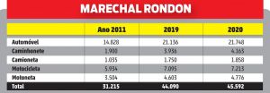 O secretário de Mobilidade Urbana de Marechal Rondon, coronel Welyngton Alves da Rosa, avalia que a frota local é bastante expressiva, considerando que o município tem cerca de 53 mil habitantes, segundo o Instituto Brasileiro de Geografia e Estatística (IBGE). Ou seja, para cada dez habitantes há aproximadamente nove veículos ou ainda média de 0,85 veículo por habitante