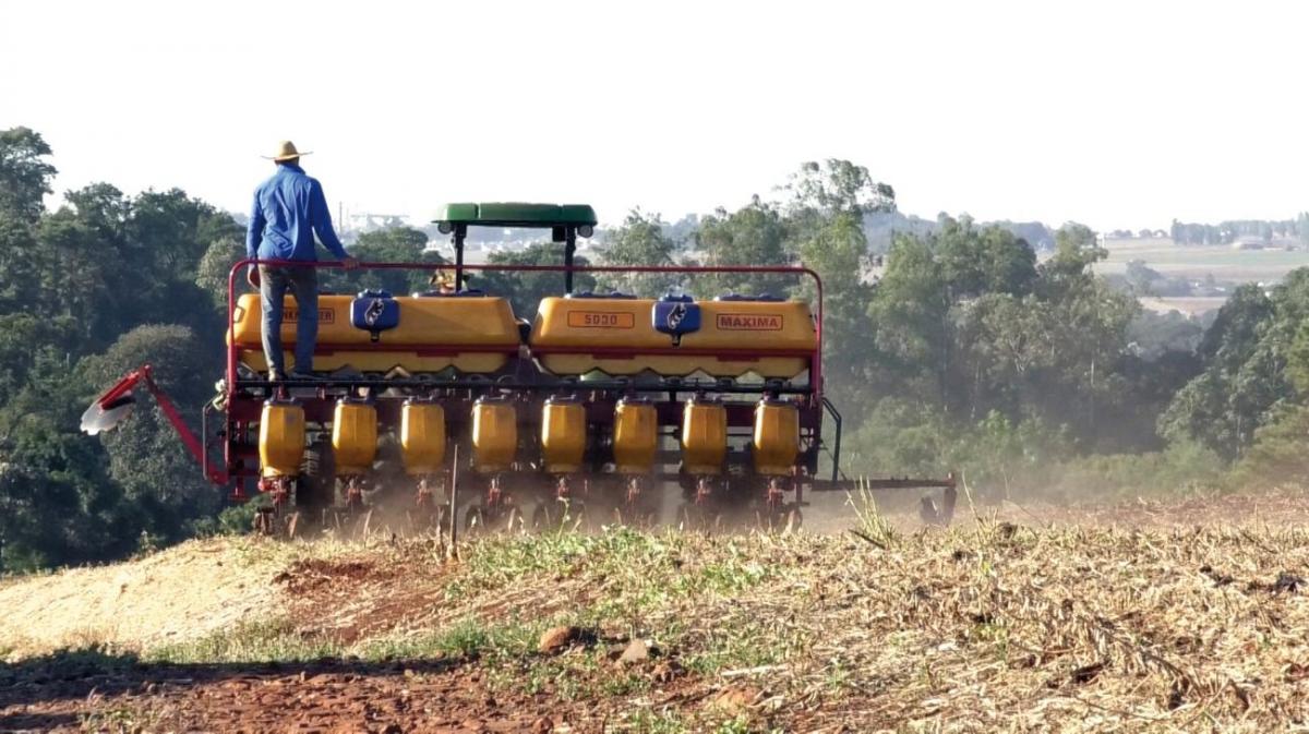 Eno Pedde cultiva milho e soja em uma área de aproximadamente 30 alqueires em Marechal Rondon. Cerca de 50% das lavouras plantadas por ele são em terras arrendadas.