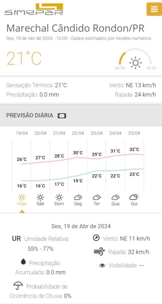 Confira a previsão do tempo para Marechal Cândido Rondon: