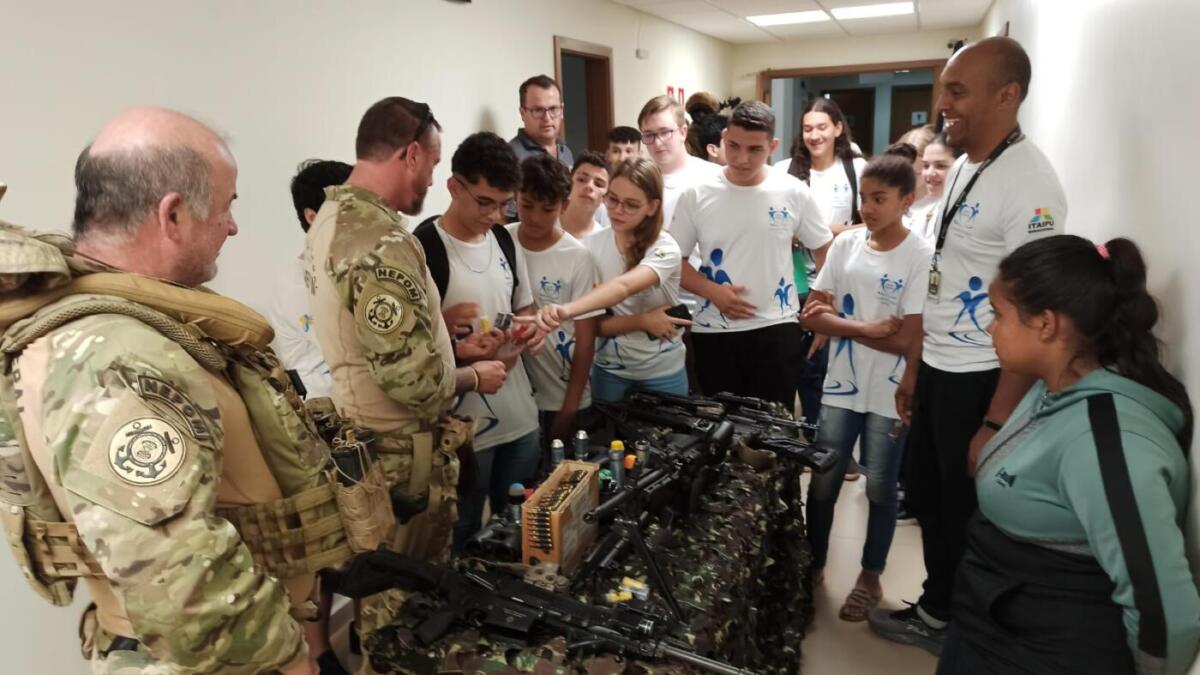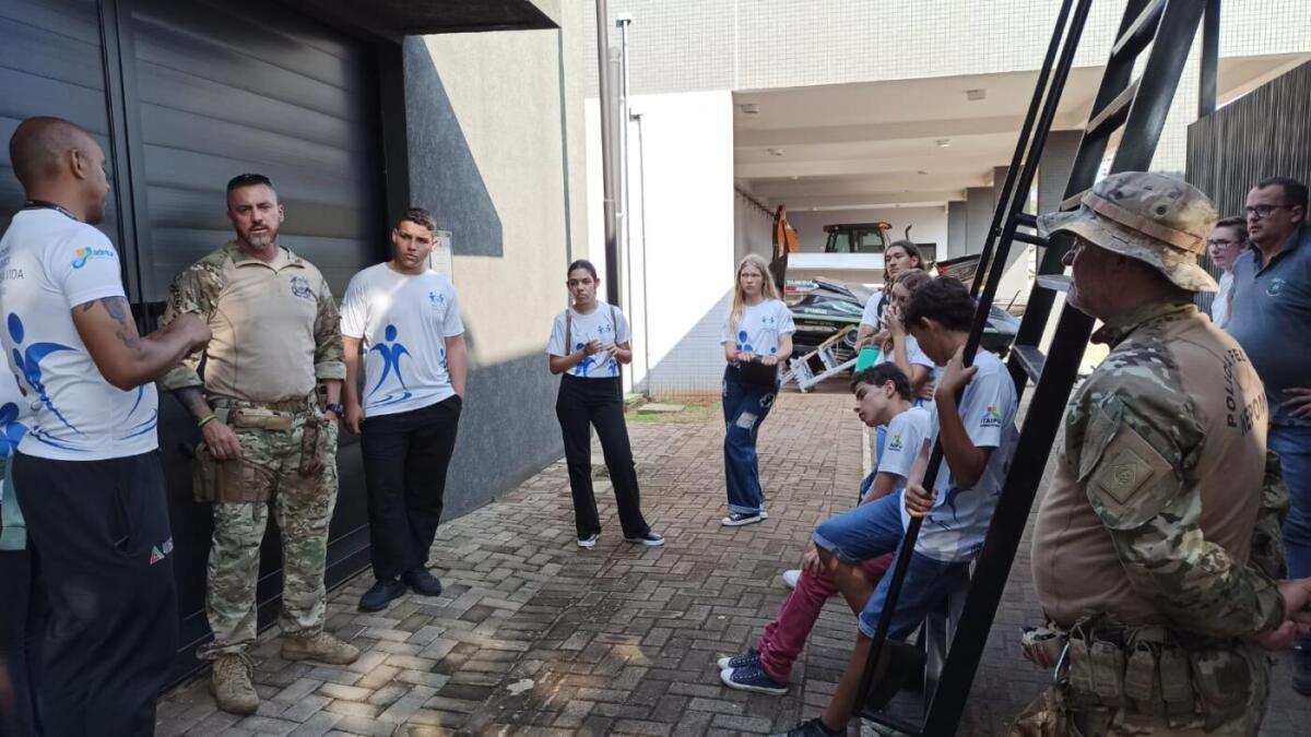 Conforme Sérgio, os jovens estão fazendo as atividades de número três, que se refere a uma pesquisa sobre descaminho e contrabando, quatro, sobre o uso de drogas e entorpecentes, divulgação de material de sensibilização, criação de uma ação para sensibilização da comunidade sobre ter uma vida saudável, e cinco, com depoimento de superação.