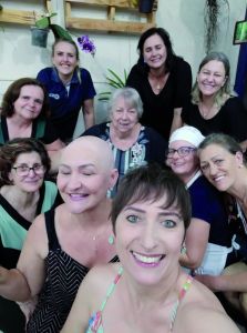 “Cerca de 15 dias após a minha primeira quimioterapia raspei a cabeça, pois os cabelos caiam aos tufos, literalmente. Passar pela experiência de ser careca em um mundo que supervaloriza os cabelos foi libertador para mim. Curti minha careca, me diverti com os lenços e pude perceber que o amor que sempre recebi das pessoas nunca esteve condicionado a isso”, recorda Claudete.