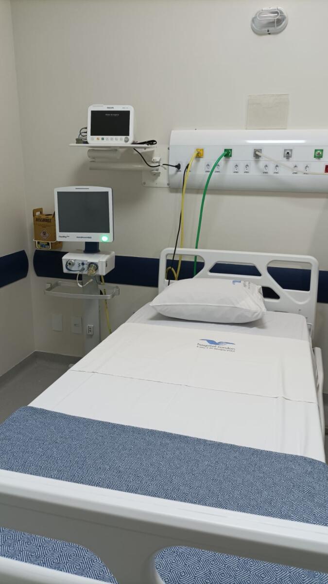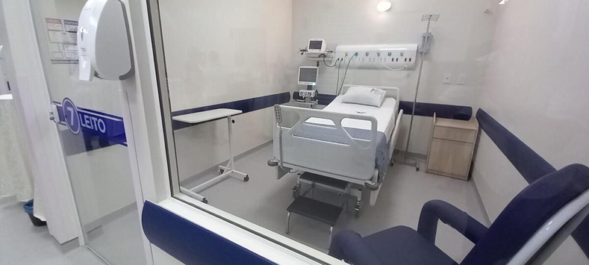 A ala de UTI é estruturada em forma de box. Cada leito é fechado com porta e possui divisores. Este recurso confere mais segurança e qualidade prestação da assistência ao paciente, contribuindo para diminuir o risco de infecções ao paciente.