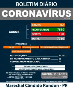 Mais um óbito por Covid-19 foi registrado em Marechal Cândido Rondon nesta quinta-feira (23). Ao todo, o município tem 158 mortes por complicações da doença.