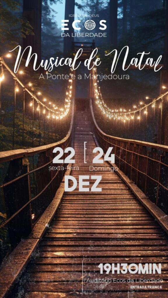 A Igreja Ecos da Liberdade, de Marechal Cândido Rondon, promove nesta sexta-feira (22) e no domingo (24), o Musical de Natal “A Ponte e a Manjedoura”.
