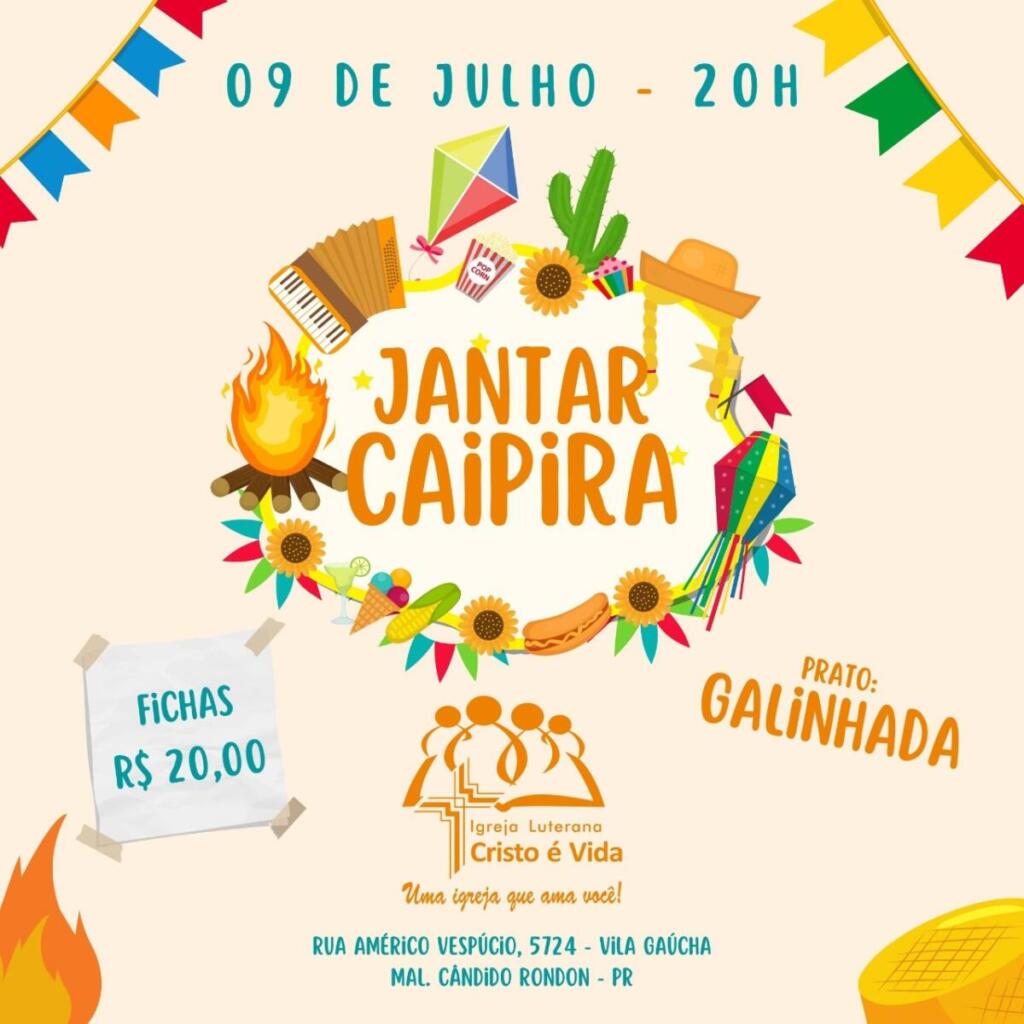 Estão à venda as fichas para o “Jantar Caipira”, que acontece neste sábado (09), a partir das 20 horas. O evento é uma promoção da Igreja Luterana Cristo é Vida, no bairro Vila Gaúcha, em Marechal Cândido Rondon. O jantar será à base de galinhada.