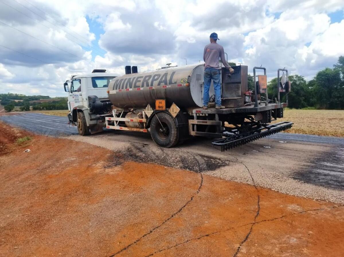 Após dias de preparação da base, a empresa Minerpal iniciou neste domingo (2), o asfaltamento sobre pedras irregulares na Linha Arara. No primeiro dia de colocação da massa asfáltica, cerca de 200 metros foram pavimentos.