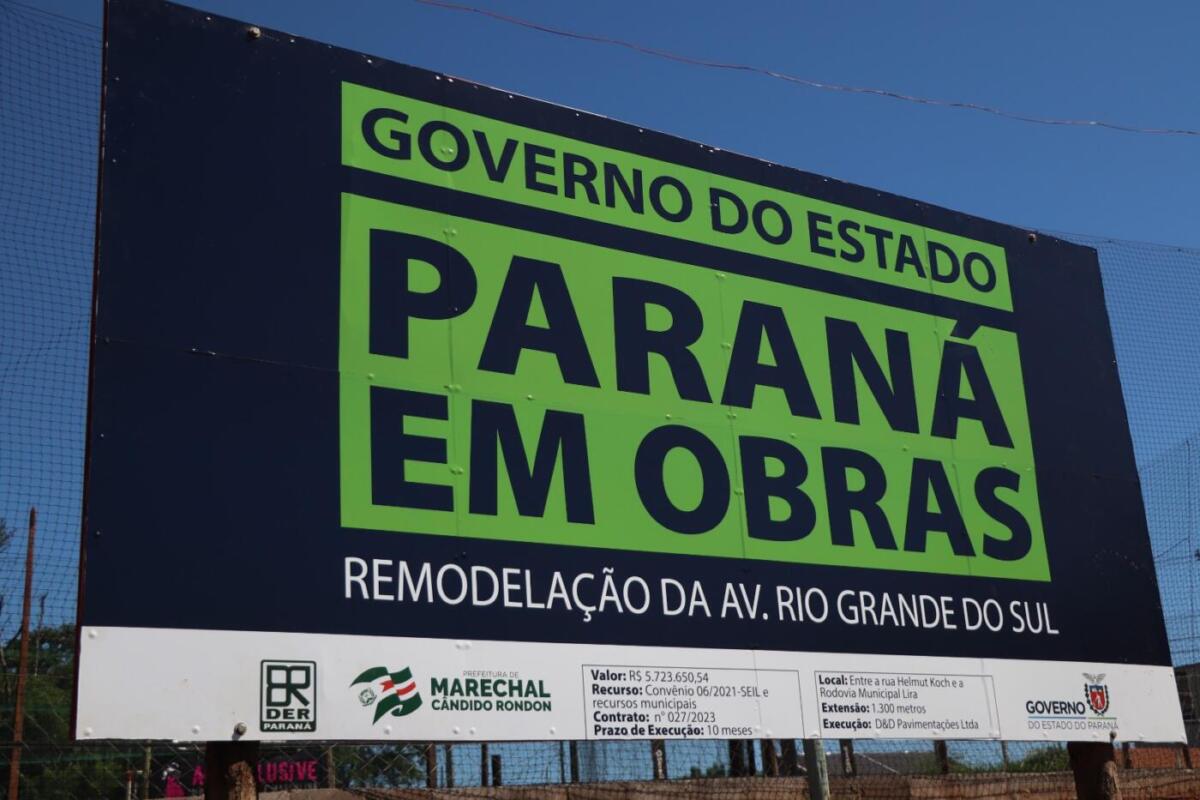 A empresa D&D Pavimentações iniciou nesta sexta-feira (31) os trabalhos para a execução de duplicação do prolongamento da Avenida Rio Grande do Sul, em Marechal Cândido Rondon. A extensão é de 1,3 quilômetro, compreendendo desde a rua Helmut Koch (Supermercado Copagril II) até a estrada de acesso ao Clube Lira.