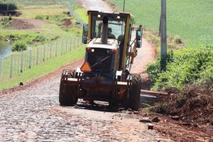 A linha Cinco Cantos também está recebendo o trecho final de pavimentação com pedras irregulares até o limite com o município de Toledo. São 9.372m² e um total de investimento de R$ 355.164,64.