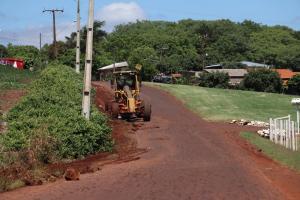A empresa ECEC (Empresa Cascavelense de Engenharia Ltda) iniciou na manhã desta terça-feira (30), os trabalhos de limpeza das laterais de um trecho da entrada que liga a sede do distrito de São Roque até Linha Cinco Cantos. Posteriormente, o trabalho consistirá na execução de reperfilamento com brita graduada e asfaltamento sobre as pedras irregulares.