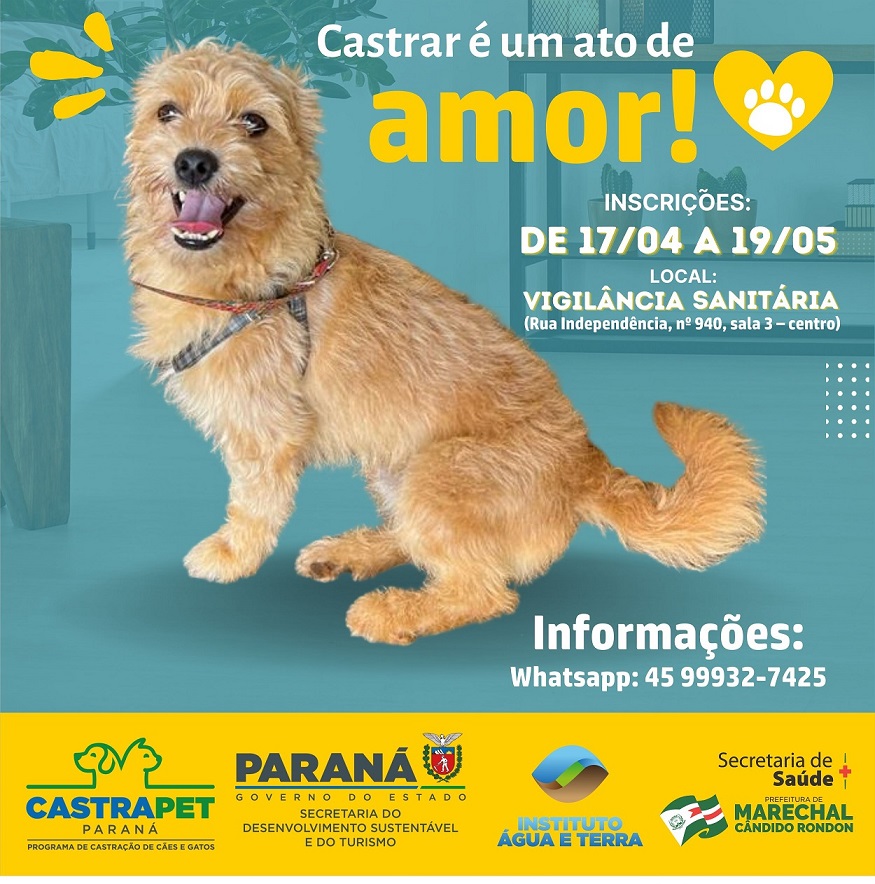 Encerram-se na sexta-feira (19), em Marechal Cândido Rondon, as inscrições para a castração de cães e gatos através do programa Castrapet, do Governo do Estado. No município a parceria é com a Secretaria de Saúde, através do setor de Vigilância Sanitária. Conforme levantamento realizado, ainda restam vagas para felinos e caninos machos.
