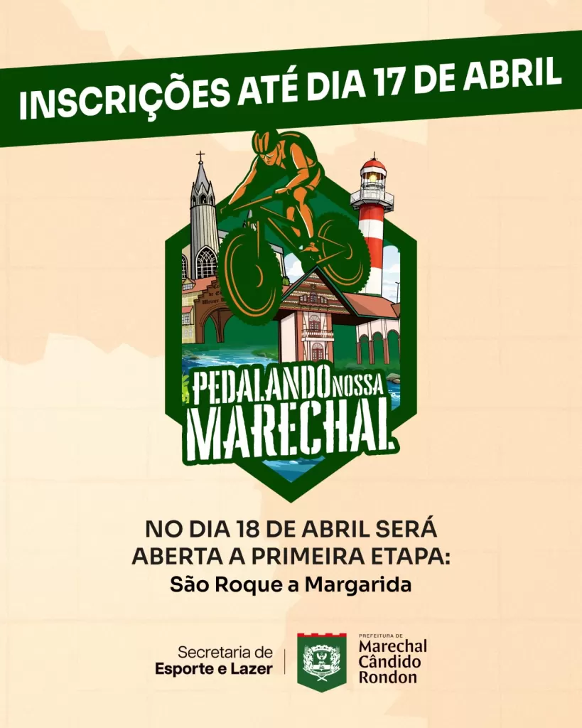 A prefeitura de Marechal Cândido Rondon, por meio da Secretaria de Esporte e Lazer, informa que hoje, sexta-feira, dia 17, é o último dia para as inscrições para o projeto Pedalando Nossa Marechal.