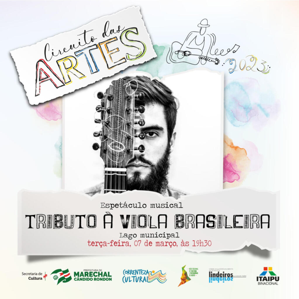 A Secretaria de Cultura de Marechal Cândido Rondon dá sequência ao projeto Circuito das Artes 2023, com o espetáculo musical “Tributo à Viola Brasileira”, que acontecerá no lago municipal rondonense na próxima terça-feira, dia 7 de março, a partir das 19h30, em comemoração ao Dia da Mulher.