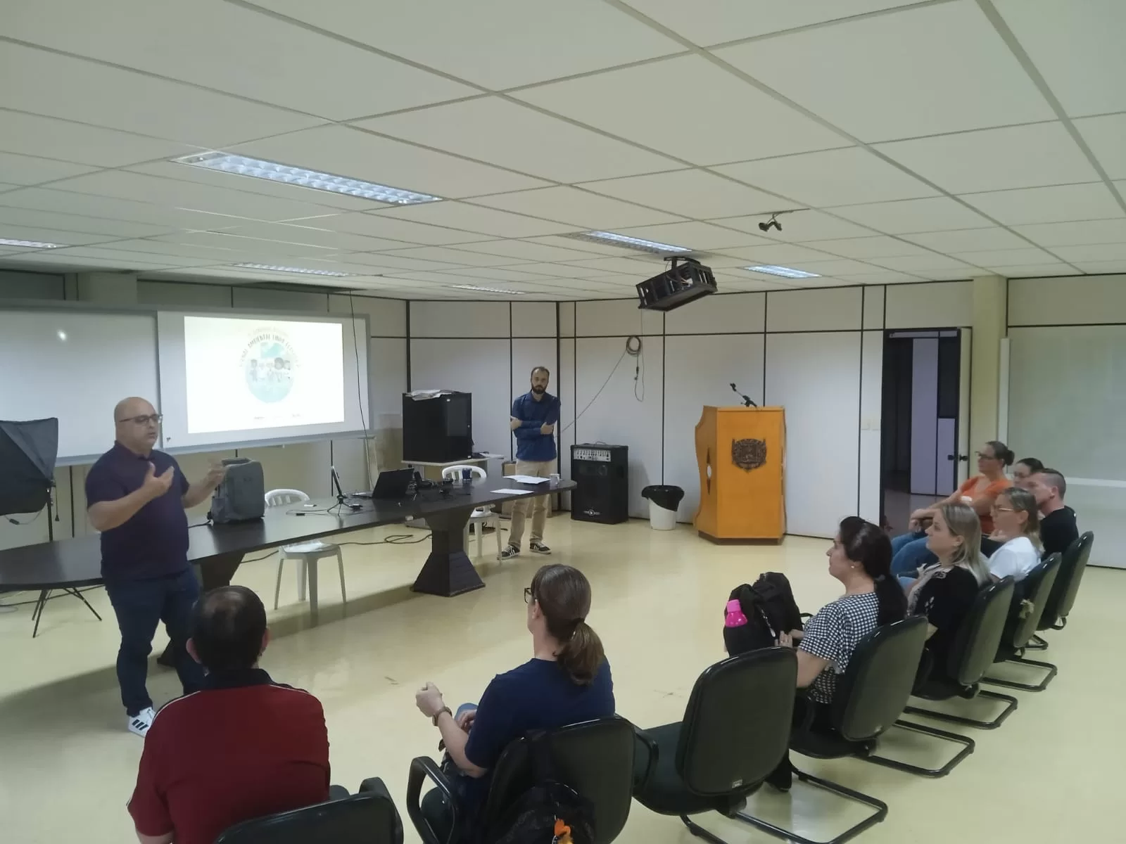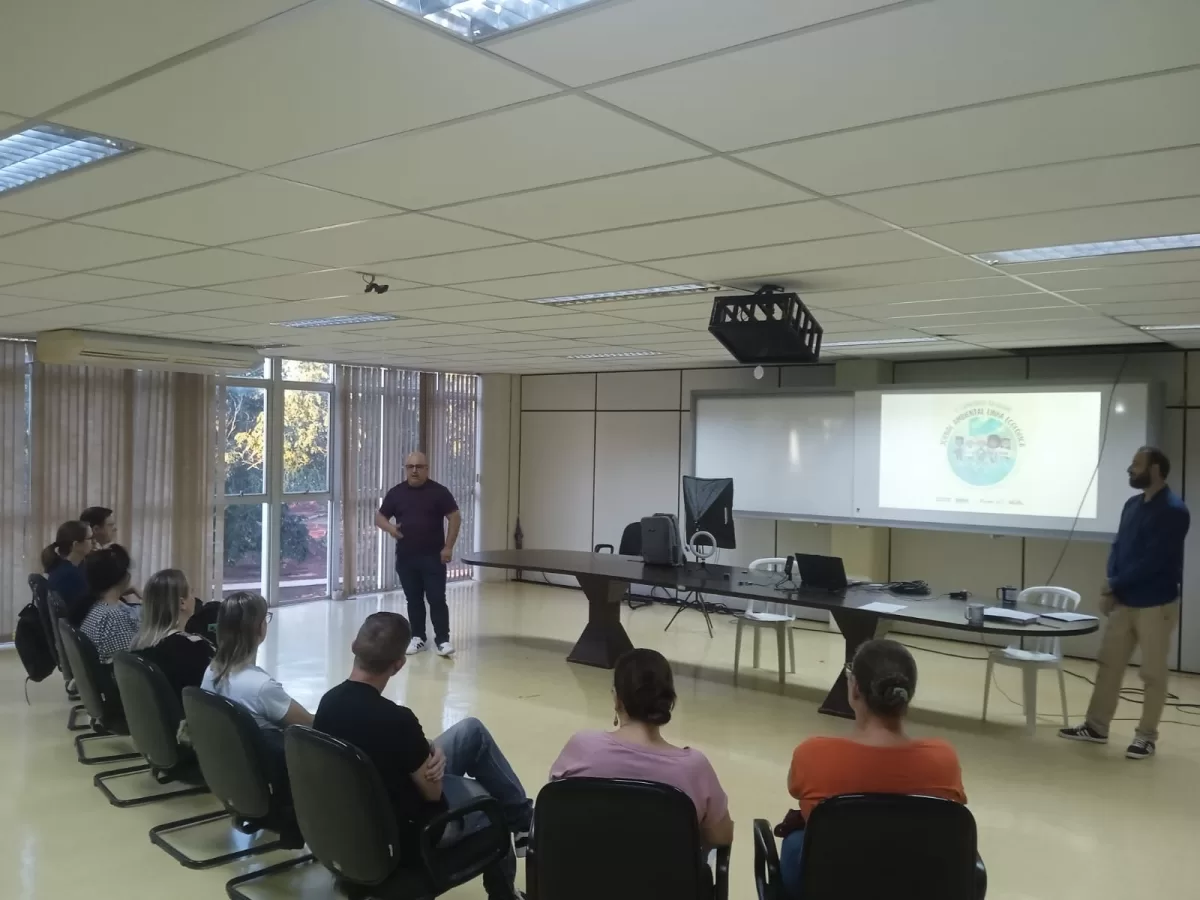O evento, realizado no auditório municipal, contou com a presença de professores de Educação Ambiental da rede pública e incluiu uma aula prática sobre mídias digitais e edição de vídeo, com o objetivo de capacitar os educadores para orientar os alunos do 5º ano na produção de reportagens ambientais.