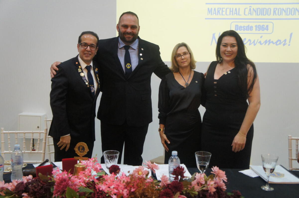 Em festiva na noite de terça-feira (27), nas dependências do salão de eventos da Churrascaria Três Passos, foram conduzidos à presidência do Lions e da Associação das Domadoras, o casal Scharlston Jakson Abegg e sua esposa Dione Raquel Weber, que receberam os comandos do casal Vandeir Francisco Guimarães e Márcia Echer.