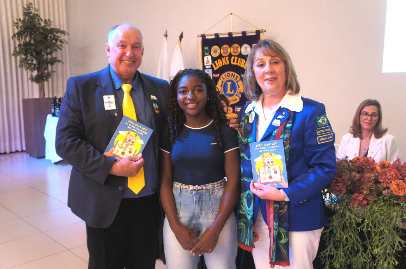 Na ocasião, a aluna Rita presentou o PDG Flávio Pires Gonçalves e sua esposa Janete e a governadora Lis Gabardo Waluszko com o livro do Clube da Leitura autografado por ela.