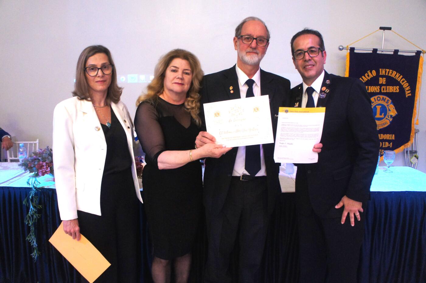 Na sequência, o casal Ivandro e Gracieli Vieira receberam do PDG Flávio Pires Gonçalves e da governadora Lis Gabardo Waluszko o reconhecimento de Clube de Excelência no ano leonístico 2019/2020 por terem atingido todas as metas estabelecidas pelo Lions Internacional.