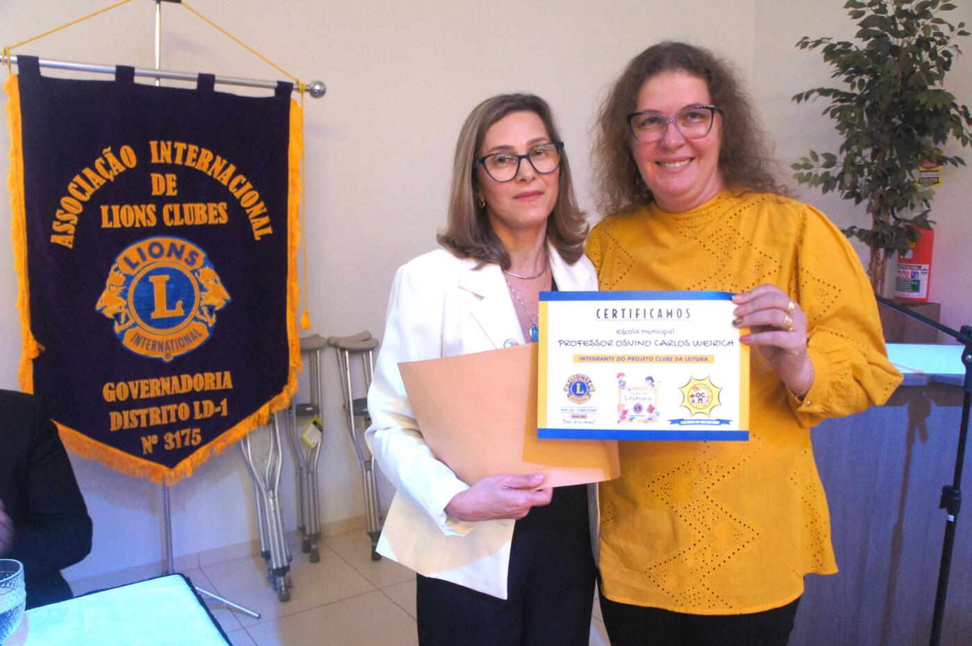 O presidente Vandeir aproveitou a visita da governadora do Distrito LD-1 para apresentar o trabalho do projeto Clube da Leitura.