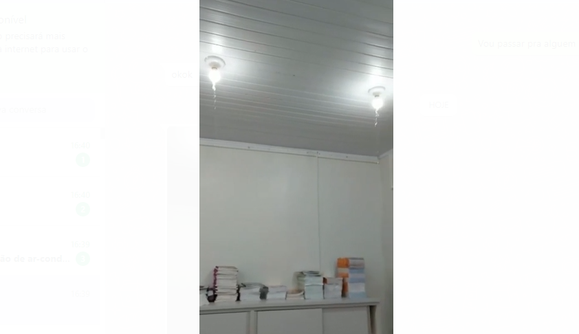 Na semana passada, de acordo com a mãe das alunas, as crianças não puderam realizar uma prova por falta de condição na sala de aula. “Isso não é de hoje. Já tem anos. Inclusive, essas goteiras estão a ponto de estragar as tão modernas lousas. Nós, pais, estamos receosos que algo pior aconteça diante das chuvas que vêm sendo registradas ultimamente. Além disso, o ar-condicionado dessa mesma sala não está funcionando. As crianças passaram por todo o calorão até agora sem ar”, mencionou.