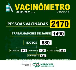 No que tange à imunização contra a Covid-19, Marechal Rondon avançou de 1.940 doses aplicadas até ontem para 2.170 pessoas vacinadas com a primeira dose conforme dados desta terça-feira.