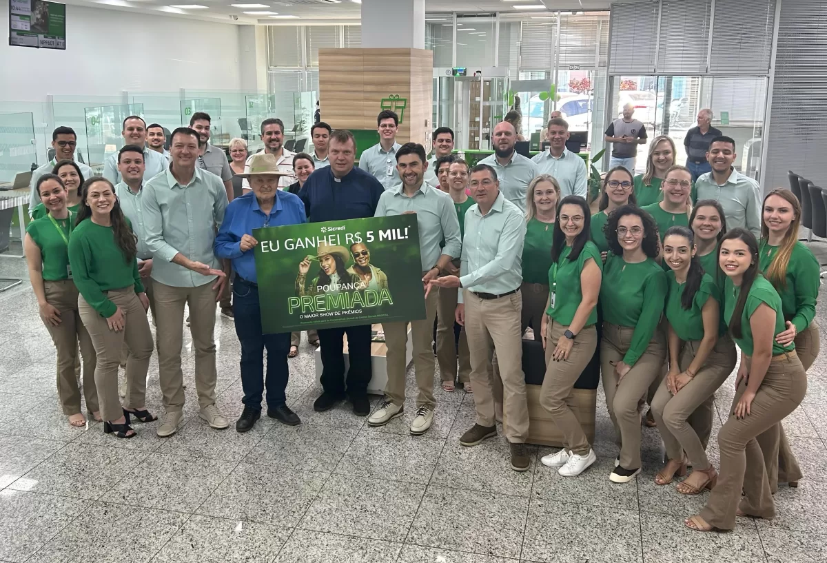 No Sicredi, ao investir em poupança você participa de diversos sorteios. Na manhã desta quarta-feira (3) a Sicredi Aliança PR/SP entregou um prêmio de R$5 mil para o associado Flávio José Troes da agência Dom João VI em Marechal Cândido Rondon/PR. A entrega foi feita na presença do Presidente da cooperativa, Fernando Barros Fenner; do Diretor de Negócios, Gilson Metz junto do gerente da agência, Luciano Kuntz.