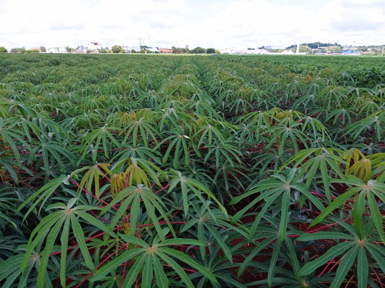 A mandioca de primeiro ciclo da região está na fase de desenvolvimento de raízes. “Acontece agora a definição das raízes tuberosas. Isto é, vão emergir várias raízes e agora a planta define alguma dessas para serem tuberosas e acumular amido. São essas raízes que a gente colhe”, menciona.