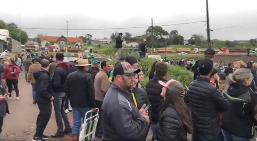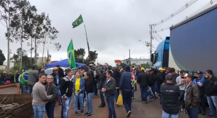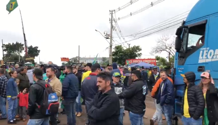 Centenas de pessoas seguem concentradas na BR-163, rodovia que liga Marechal Cândido Rondon a Toledo e Guaíra, nas imediações do trevo/portal rondonense, no fim da tarde desta segunda-feira (31). O movimento teve início no final da manhã e ao longo do dia foi reunindo mais pessoas, sendo moradores de Marechal Rondon e municípios da microrregião. Entre eles, empresários, caminhoneiros e apoiadores do presidente Jair Bolsonaro.