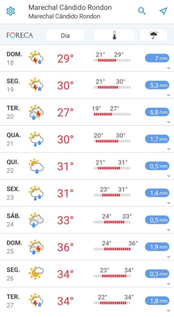 Confira a previsão do tempo para Marechal Rondon nos próximos dias: