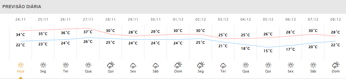 Para os próximos dias o sol toma conta do céu, trazendo temperaturas elevadas, mas segundo as previsões do Sistema de Tecnologia e Monitoramento Ambiental do Paraná (SIMEPAR), a chuva ainda deve aparecer até o final do mês.