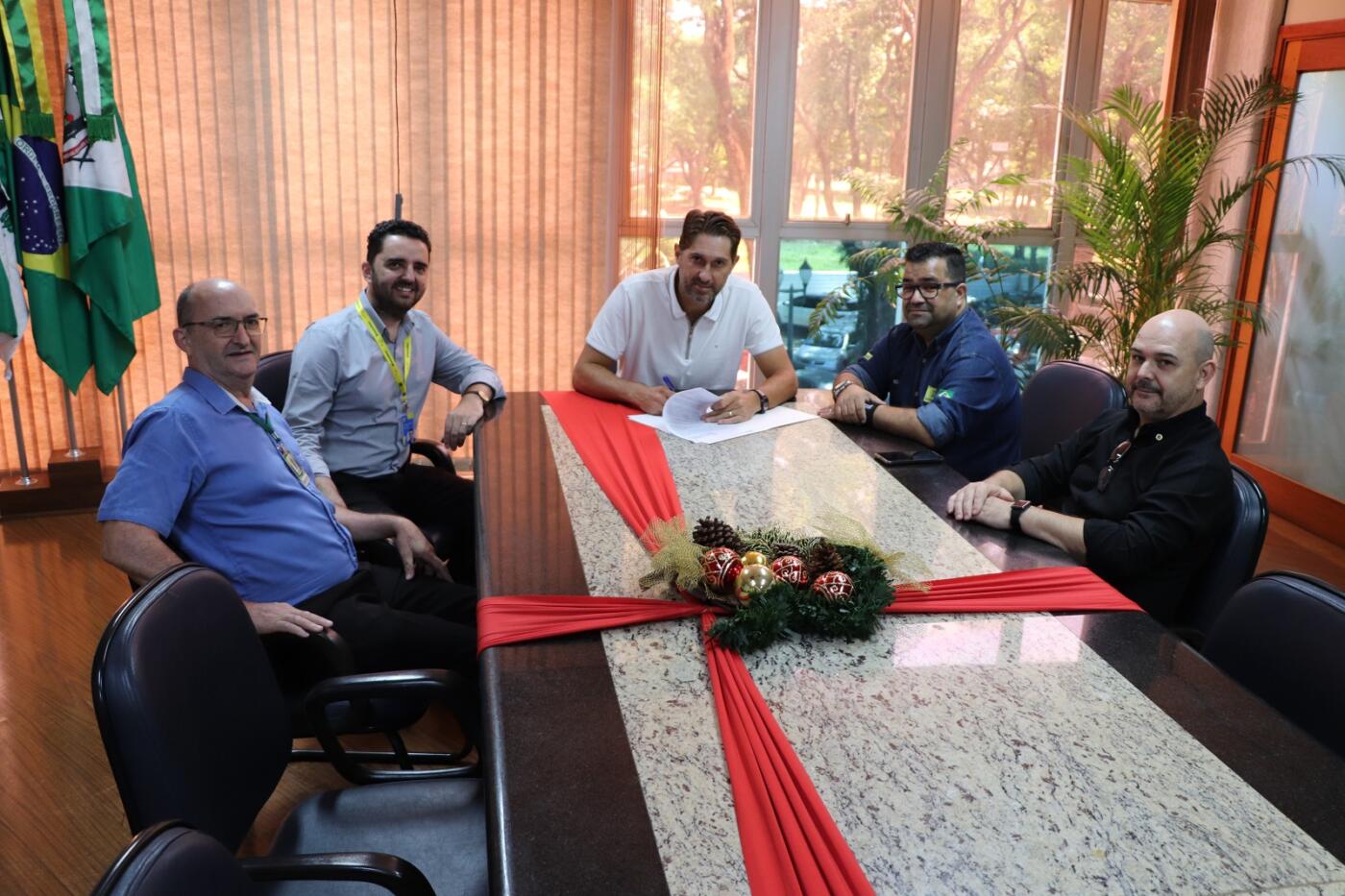 Participaram do ato, o prefeito Marcio Rauber, os secretários municipais de Administração, Marcelo Portela, e de Fazenda, Carmelo Daronch, o gerente local do Banco do Brasil, Ozires de Souza, e o gerente de relacionamento governamental, Luiz Carlos Vieira.