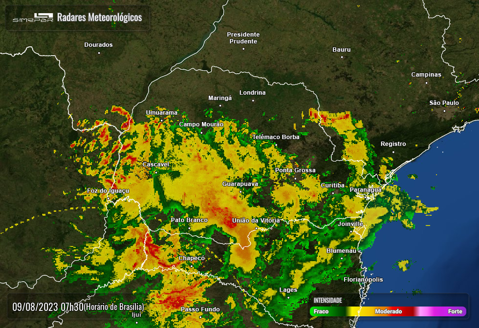 A condição de instabilidade continua predominando hoje no Paraná, em virtude da formação de um sistema de baixa pressão sobre o Sul do Brasil. Com isso, chuvas ocorrem a qualquer hora do dia, acompanhadas de descargas atmosféricas e possibilidade de ventos fortes. As temperaturas ficam amenas em boa parte do Estado.