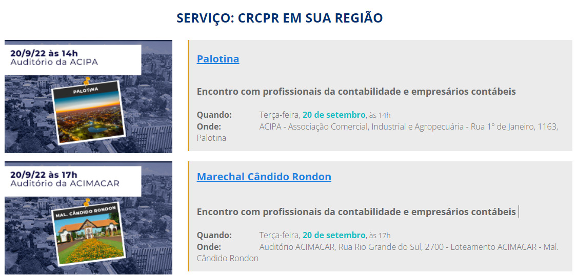 Em Marechal Rondon o encontro vai acontecer às 17 horas, para contadores, nas dependências da Associação Comercial (Acimacar) e às 19h30 para universitários de Ciências Contábeis, no auditório do Isepe Rondon.