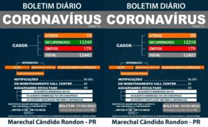Marechal Cândido Rondon registrou 40 novos casos de Covid-19 na última semana, segundo o boletim atualizado e divulgado nesta terça-feira (17) pelo Setor de Epidemiologia da Secretaria de Saúde. Ao todo, o município rondonense tem 12.447 diagnósticos de coronavírus, sendo que 12.249 munícipes já se recuperaram e 179 foram a óbito por complicações da doença.
