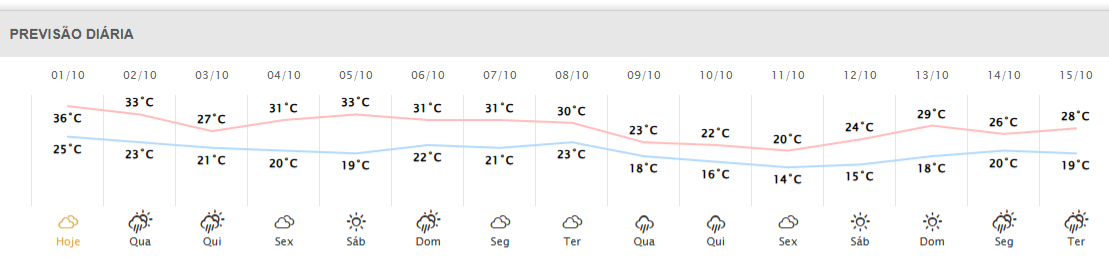 Confira a previsão do tempo para Marechal Rondon nos próximos dias, segundo o Simepar: