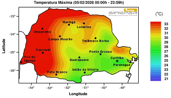 Outras cidades da região também tiveram calor intenso. Capanema chegou a 38,5°C e Planalto registrou 35,5°C, conforme dados oficiais.