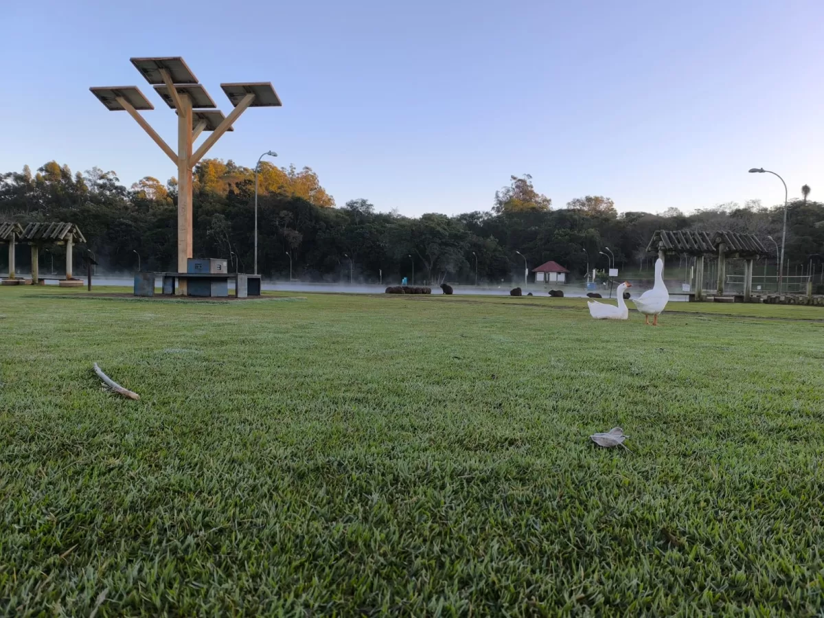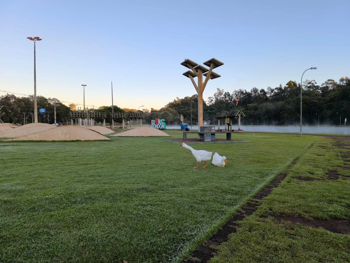 A manhã desta terça-feira (24) foi marcada por temperaturas baixas em Marechal Cândido Rondon, consolidando-se como o dia mais frio do ano na cidade. A equipe do jornal O Presente esteve no Lago Municipal e registrou um cenário típico de inverno, com a presença de geada fraca.
