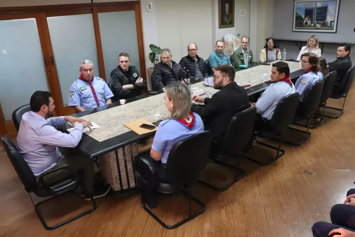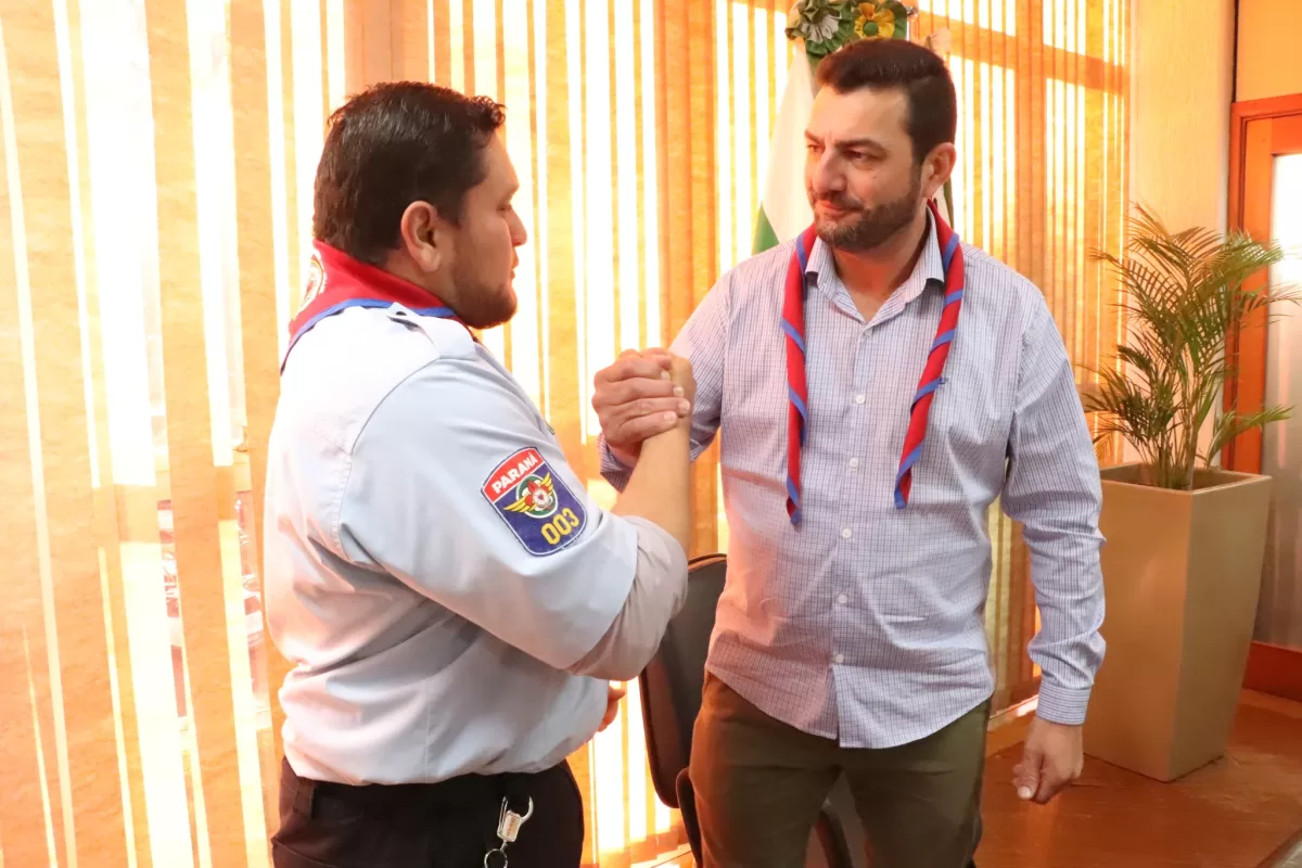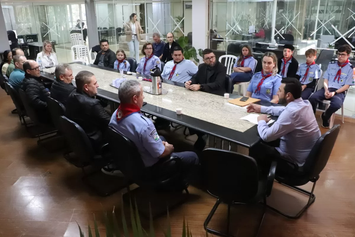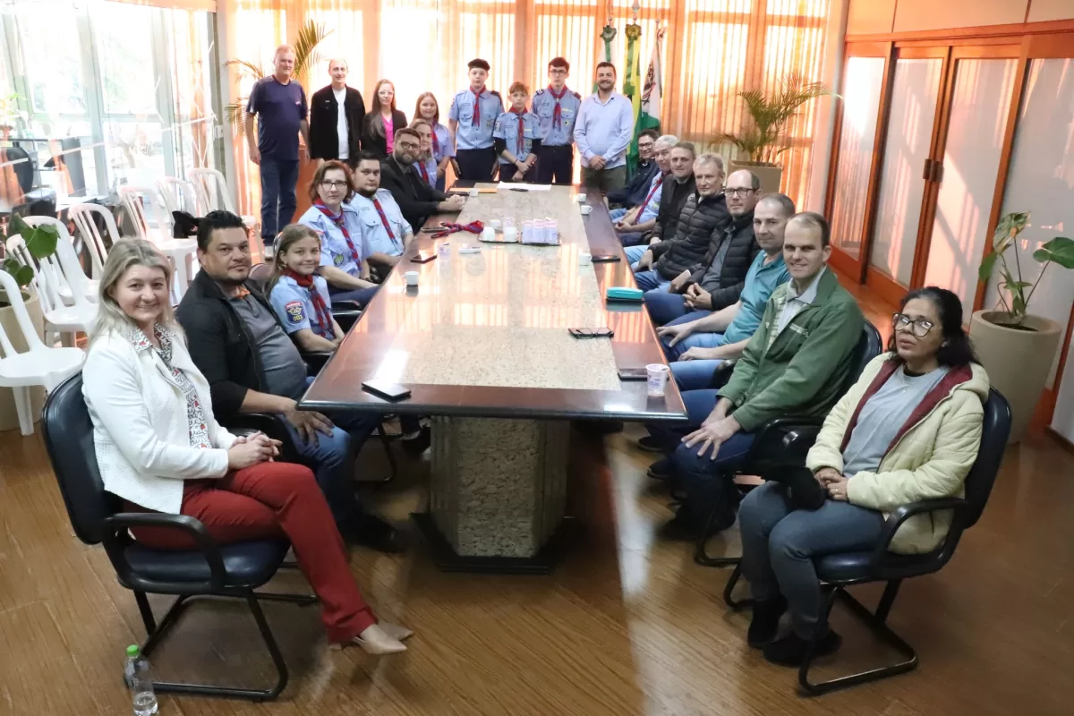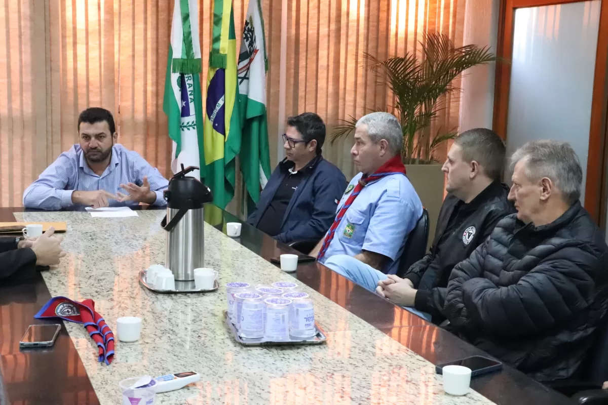 Durante a visita ao prefeito Adriano Backes, foi oficializado o convite para a cerimônia de abertura do Acampamento Internacional de Patrulhas (CIP 2025), que acontecerá no dia 17 de julho, às 10 horas, no Clube de Campo Roda D’Água, local que também sediará o acampamento entre os dias 16 e 20 de julho.