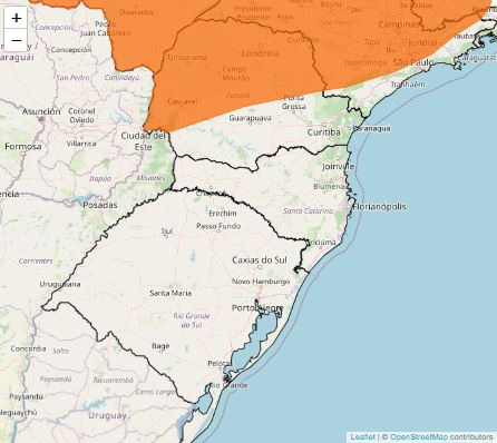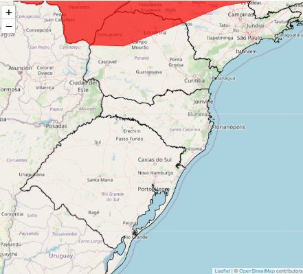 A região central, norte, noroeste, campos gerais e oeste do estado também estão sob área de abrangência do alerta de baixa umidade, perigo, que é mais severo do que o aviso de perigo potencial.