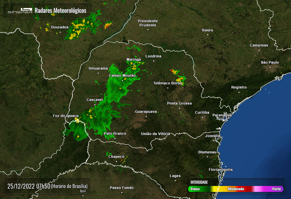 O domingo de Natal amanheceu com chuva em Marechal Cândido Rondon. Conforme o Simepar, no decorrer do dia o tempo deve permanecer parcialmente nublado e haverá novas precipitações pluviométricas, que podem chegar ao acumulado de 14,5 mm. A temperatura máxima deve ser de 26˚C.