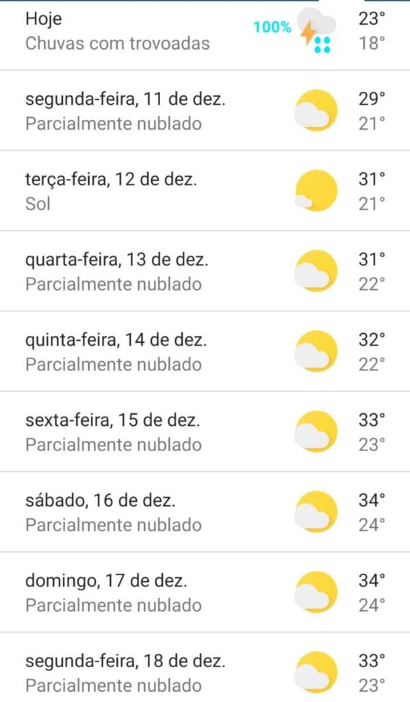 Veja a previsão do tempo para Marechal Rondon nos próximos dias: