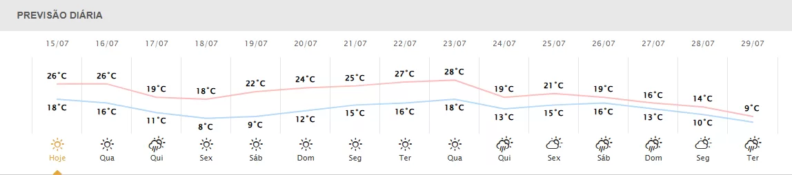 “A partir da quarta (16) teremos mudanças nas condições do tempo, visto que temos o deslocamento de uma frente fria que avança pelo Sul do país, chegando ao Paraná entre o final da tarde e a noite de quarta-feira”, explica Paulo Barbieri, meteorologista.