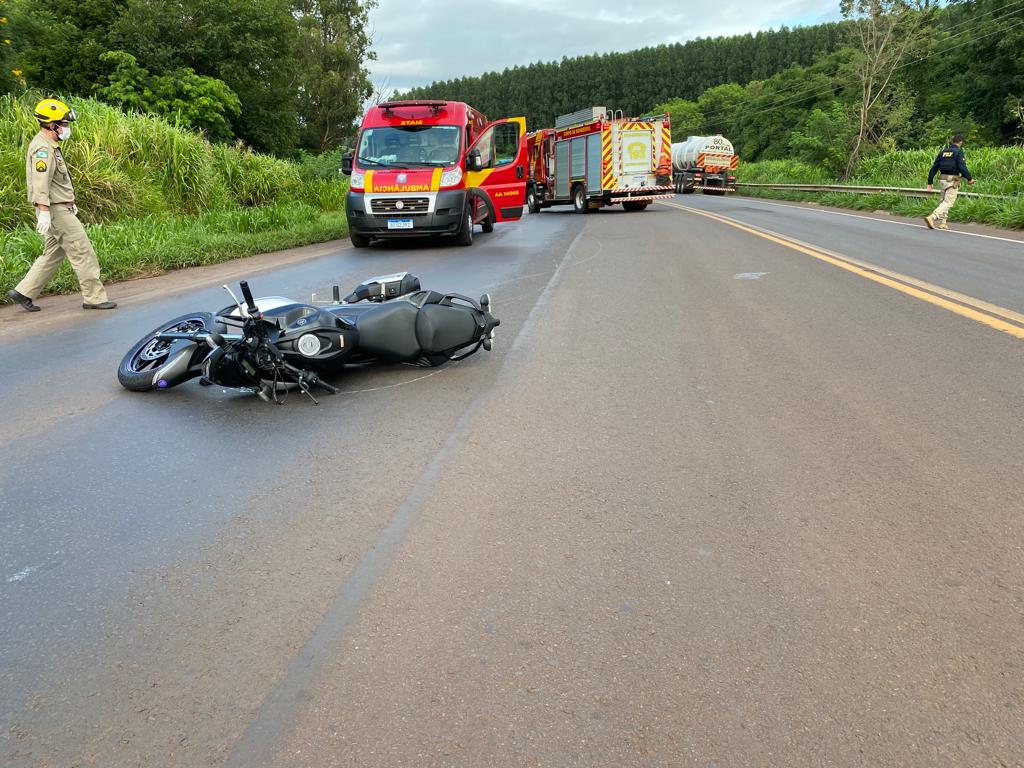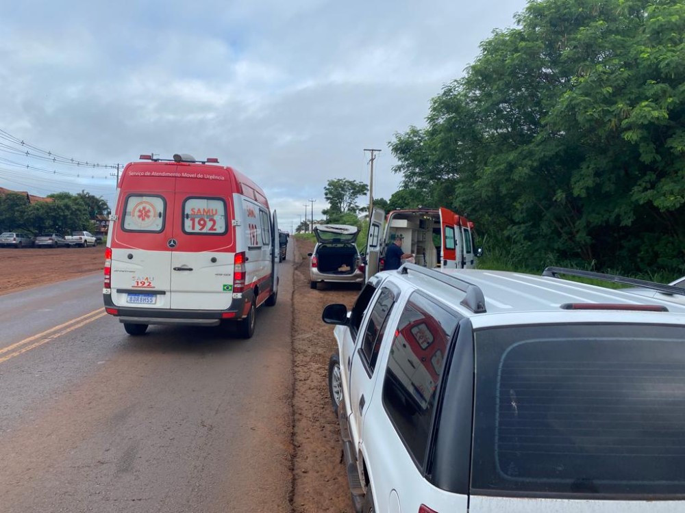 A primeira colisão, registrada por volta das 7 horas, foi no trecho que liga Marechal Rondon a Mercedes, próximo da Mineradora Dalmina, envolvendo uma caminhonete SW4 e uma motocicleta Yamaha Fazer. A moto era ocupada por um casal de Marechal Rondon, que sofreu queda e resultou com escoriações generalizadas.