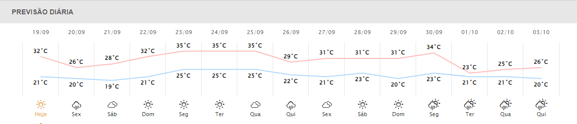 Condição do tempo nos próximos dias