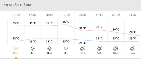 Na Terra das Cataratas, Foz do Iguaçu, o dia fica um pouco mais quente com máxima na casa dos 34°C, ventos de até 14km/h e umidade do ar entre 48% e 92%.