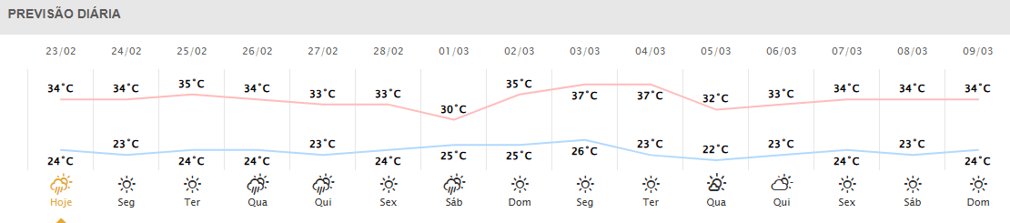 O domingo será de tempo estável na maior parte do Paraná. A nebulosidade ficará variável em vários setores ao longo do dia, com possibilidade para temporais bastante isolados no Noroeste e Oeste. Já na RMC e nas praias, há previsão de garoa/chuva fraca bem ocasional. As temperaturas máximas deverão ficar próximas dos 30°C entre a RMC e o litoral e, poderão atingir e até mesmo ultrapassar ligeiramente os 35°C no Sudoeste, Oeste, Noroeste, Norte Central e Norte Pioneiro.