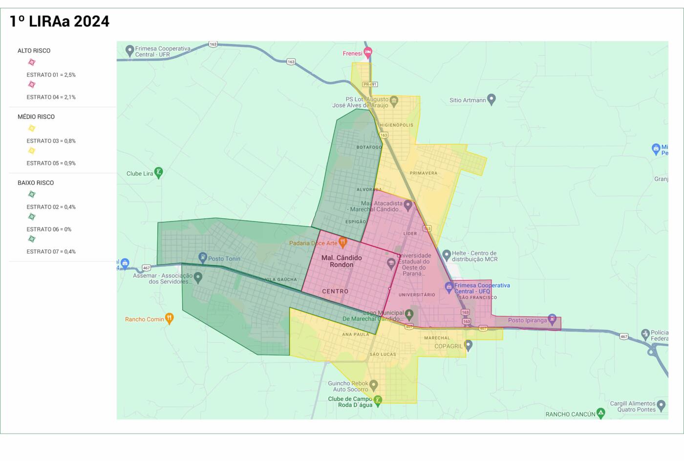 A Secretaria de Saúde de Marechal Cândido Rondon, por meio do setor de Endemias, divulgou nesta semana o primeiro Levantamento Rápido de Índices para Aedes aegypti (LIRAa) de 2024. Os agentes de endemias visitaram 1679 imóveis e a média de infestação na sede municipal é de 1%.