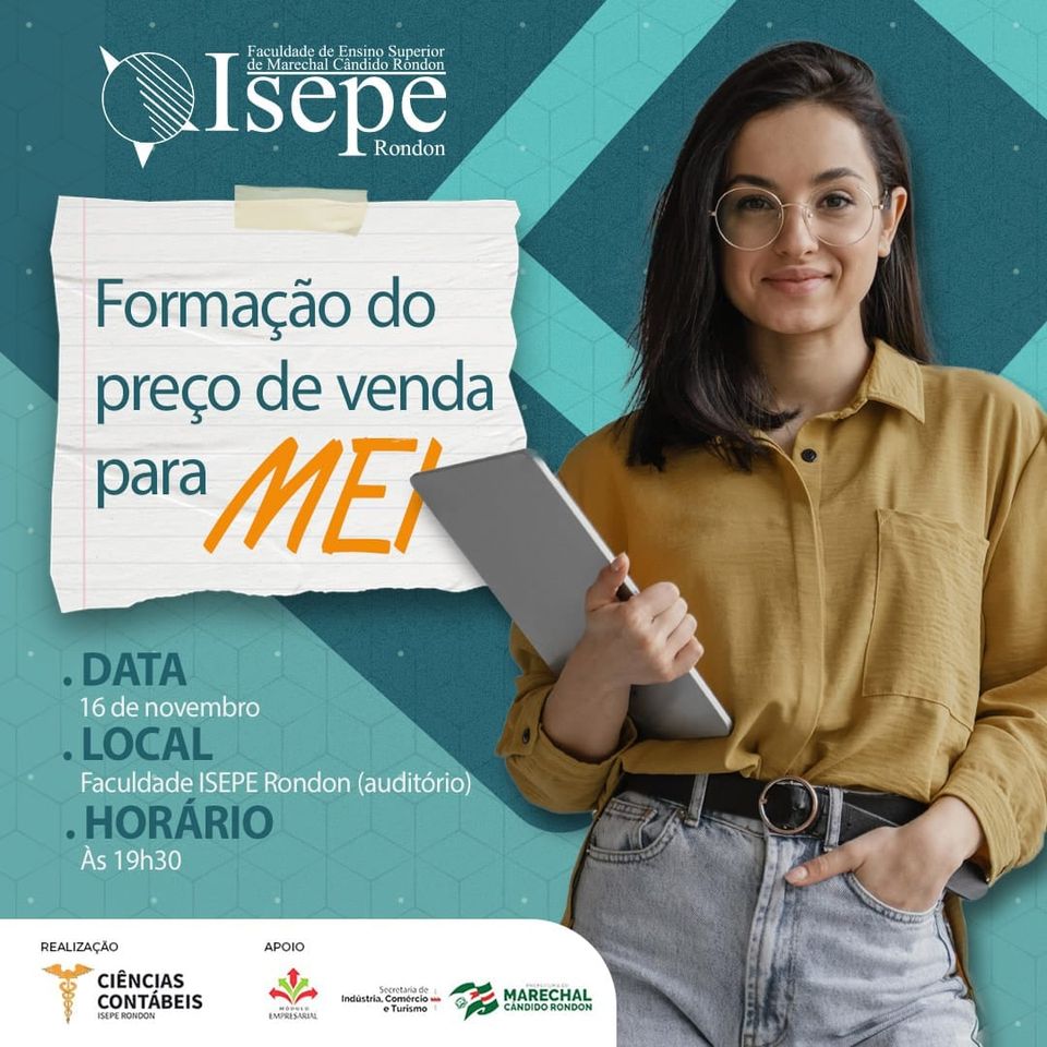 Com o propósito de auxiliar os empresários e microempreendedores com a precificação de seus produtos e serviços, o curso de Ciências Contábeis da Faculdade Isepe Rondon, em parceria com a prefeitura de Marechal Cândido Rondon, por meio da Secretaria de Indústria e Comércio e do Módulo Empresarial, realizará hoje, 16 de novembro, às 19h30, no auditório da Faculdade Isepe Rondon, um treinamento referente à gestão das atividades empresariais e estratégias de formação do preço de venda em empresas industriais, comerciais e prestadoras de serviços.