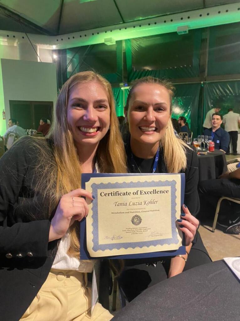 Recém egressa do curso de Zootecnia da Unioeste rondonense e agora mestranda da mesma instituição, Tânia Luiza Köhler faturou um prêmio de excelência na sessão Metabolismo e Nutrição Geral, com trabalho orientado pela professora Cinthia Eyng e intitulado “Impacto da inclusão dietética de grãos secos de destilaria sobre a saúde intestinal de frangos de corte”.