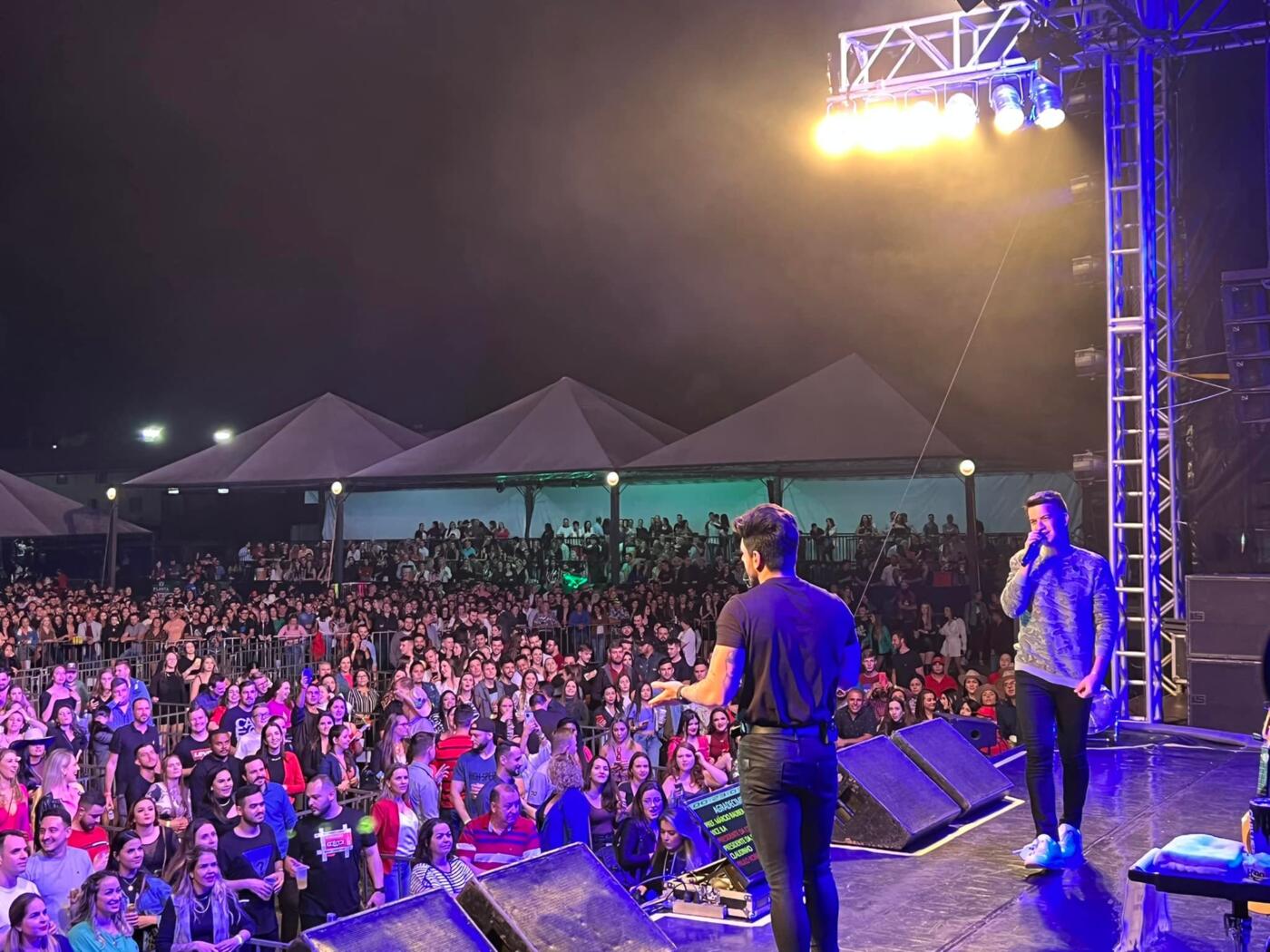 Um dos principais atrativos da primeira noite da Expo Rondon, quinta-feira (21), foi o show com Hugo e Guilherme, que reuniu milhares de pessoas no Estádio Municipal.