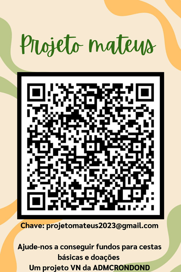 As doações poderão ser feitas até o dia 29 de setembro e entregues na sede da Igreja, Rua Rio Grande do Norte, nº 76, centro, com identificação para o Projeto Mateus, ou através do PIX projetomateus2023@gmail.com, ou ainda agendar retirada dos itens pelo telefone (41) 99247-1374.