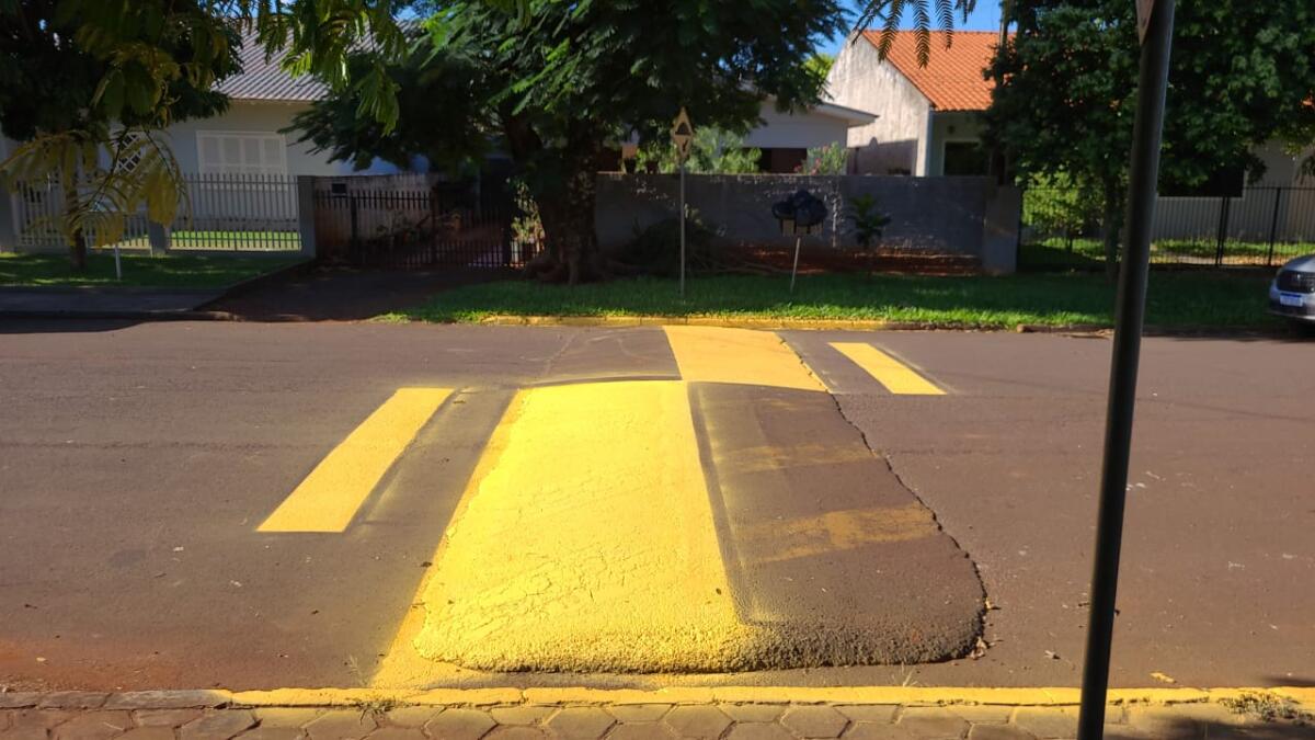 A administração municipal de Marechal Cândido Rondon, por meio da Secretaria de Mobilidade, realiza constantemente trabalhos de revitalização da pintura das lombadas.